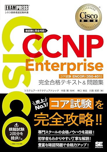 1位:シスコ技術者認定教科書 CCNP Enterprise 完全合格テキスト&問題集(コア試験 ENCOR 350-401)